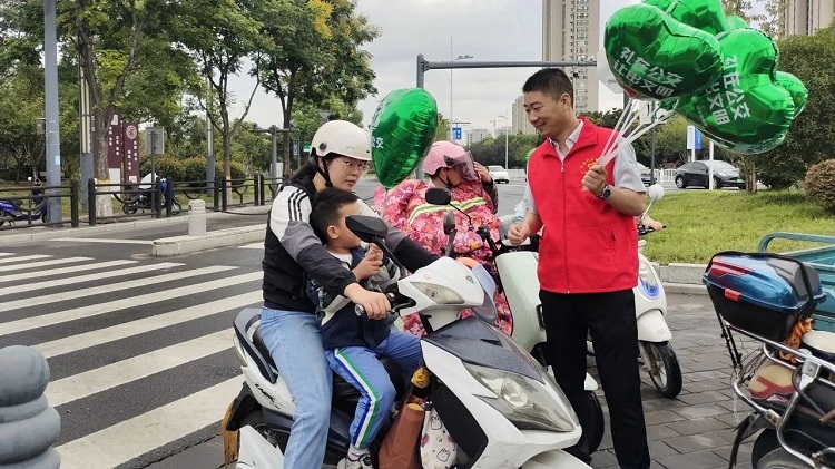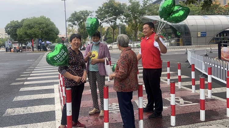 “禮讓斑馬線,讓綠色氣球帶您過馬路!”這是一場特殊的文明示范活動。活動現場,志愿者們熱情地將一個個印有“禮在公交、讓出文明”的綠色氣球送到行人手中,旨在用新穎、獨特的方式向廣大市民傳遞“禮讓斑馬線”的文明理念,讓市民在獲得參與感的同時更增添責任感。