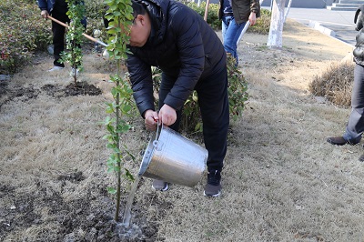 在建湖上岡瀝青拌和場內(nèi),隨著公司工會主席的一聲號召,大家即刻展開植樹行動。雖然天氣仍然有些陰冷,但大家精神飽滿,干勁十足。大家認真地按照植樹的技術(shù)要領(lǐng),瞄線扶樹、揮锨培土、調(diào)整踩實、移管澆水,全體人員通力配合,每個環(huán)節(jié)井然有序。經(jīng)過大家1個小時的辛勤勞作,新栽種的黃芽樹苗迎風挺立,它們沐浴著春風,煥發(fā)出春天的色彩,也為美麗公路再添了一抺新綠。